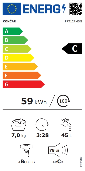 Potrošnja energije: 0,59 kWh po ciklusu