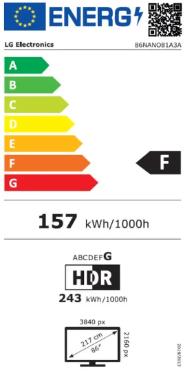 | Dijagonala ekrana | 86" (218.4 cm) |