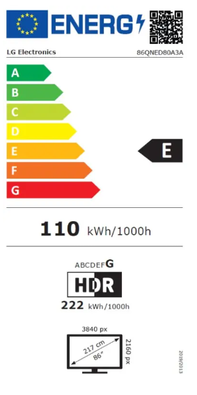 | Dijagonala ekrana | 86" (218.4 cm) |